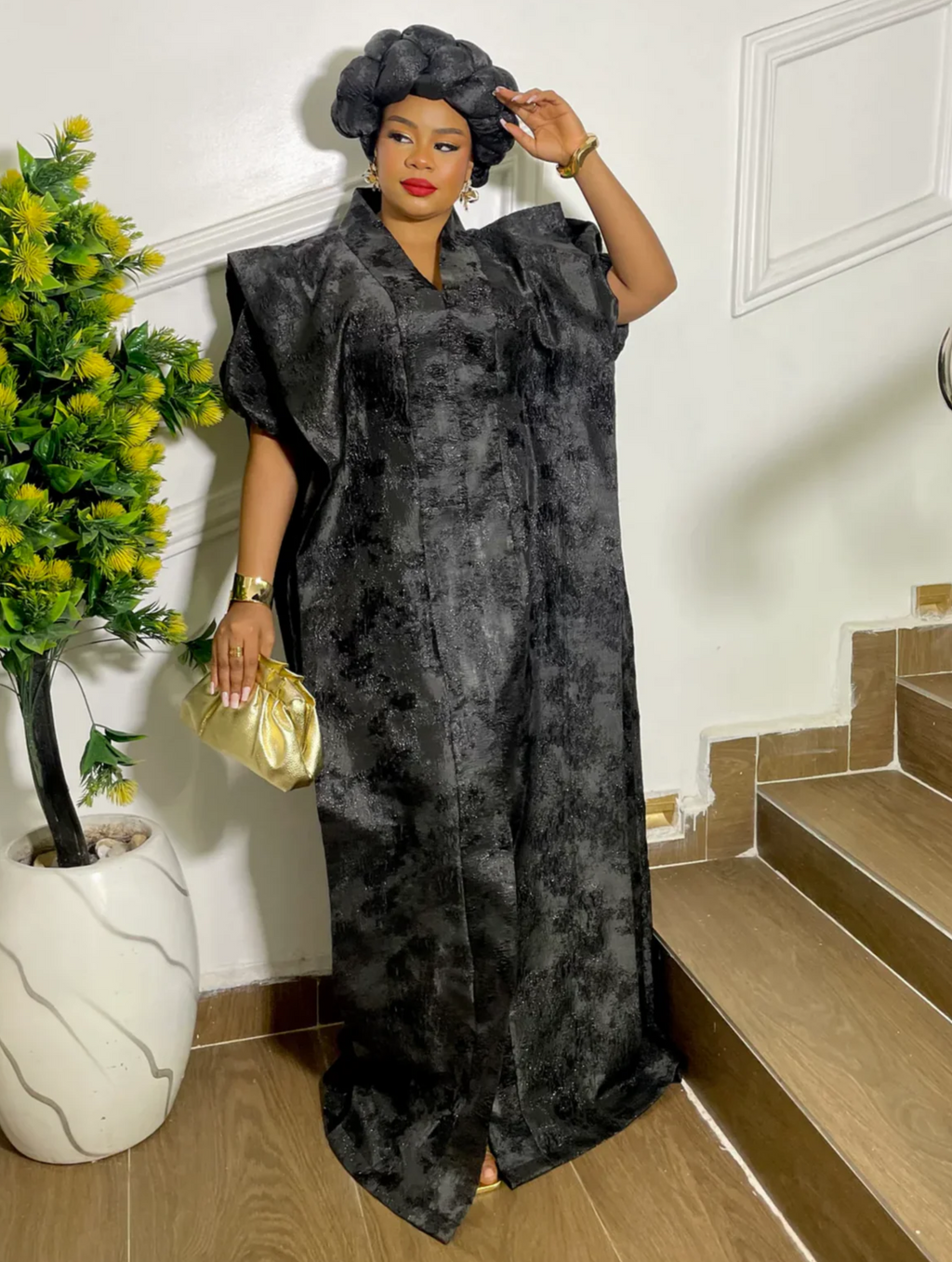 Transform your style with this rich brocade masterpiece. Designed with functional side pockets, a coordinating headpiece and scarf, and a hidden side rope to cinch and flatter your waistline effortlessly. A timeless statement for any occasion.
