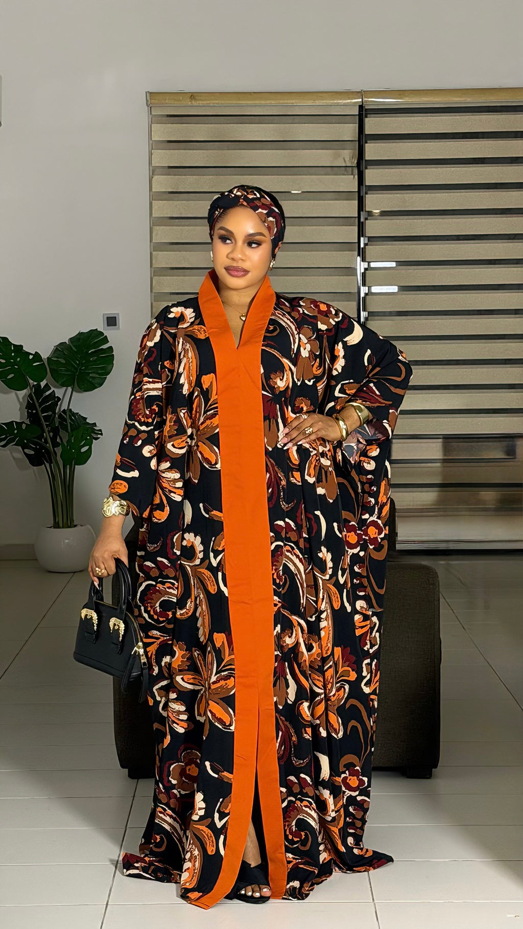Stunning crepe Bubu with a tailored inner belt for an adjustable, flattering fit. Comes with a matching scarf. Perfect for both casual days and stylish outings.