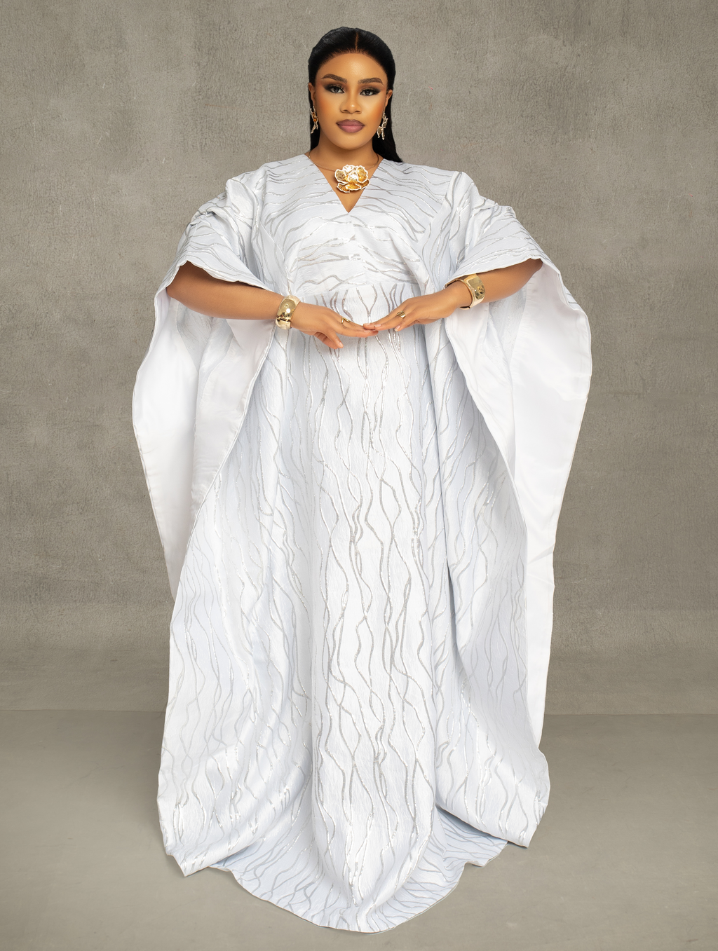 Step into timeless elegance with this pristine white Bubu, crafted from premium textured fabric that exudes quiet luxury. Its wide, flowing sleeves are designed to drape gracefully, giving you a regal presence with every movement. A tailored inner rope cinches the waist for a customizable silhouette, while the matching scarf completes the look with sophistication. Perfect for special occasions or when you simply want to embody effortless grandeur.