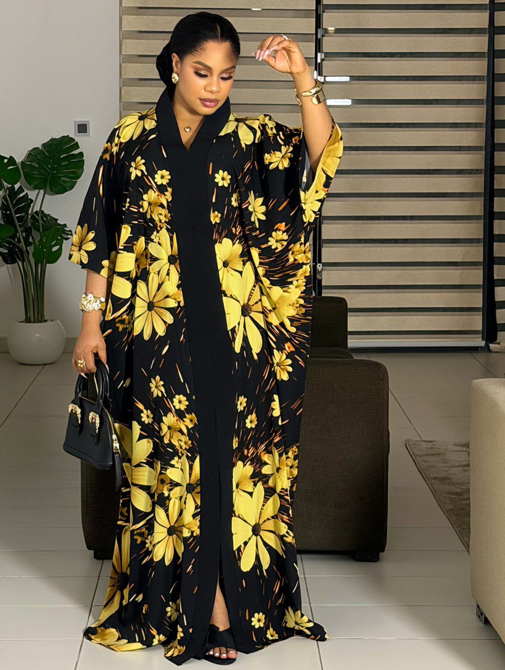 Elegant crepe Bubu with a tailored inner belt for an adjustable fit. Comes with a matching scarf. Perfect for casual wear or stylish outings.