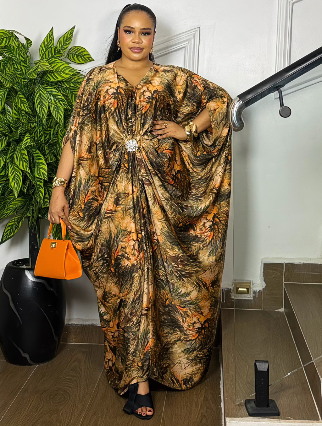 Make a bold entrance in our Queen’s Aura Kaftan — a luxury statement piece designed to turn heads effortlessly. The flowy silhouette drapes beautifully on every body shape, giving you that rich, regal look with comfort.