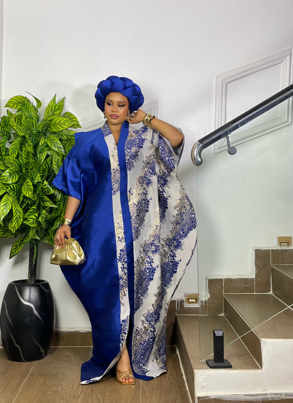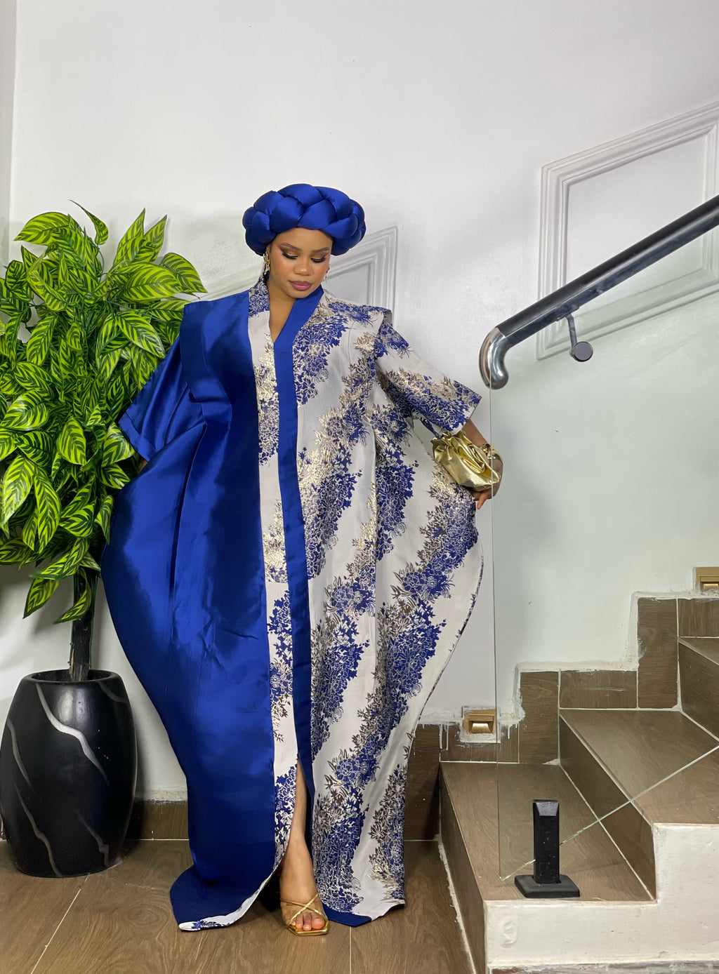 Crafted from a rich blend of brocade and mikado, this elegant piece is perfect for events. It features a tailored inner belt you can tie at the back to achieve your desired fit. Comes complete with the matching headpiece as seen on the model—sure to turn heads wherever you go.