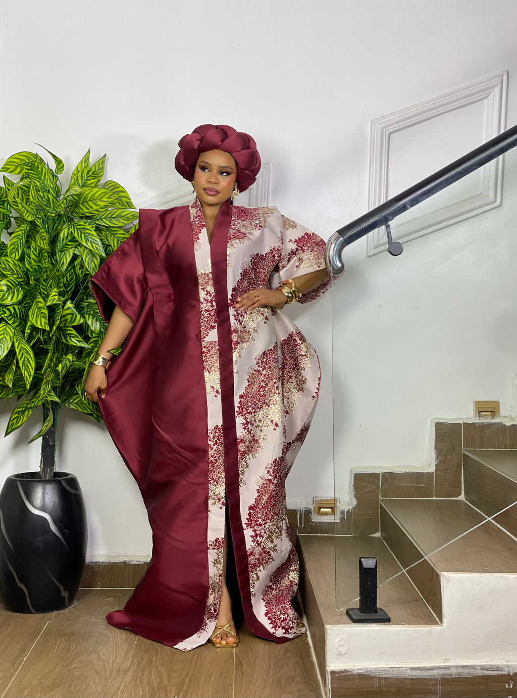Crafted from a rich blend of brocade and mikado, this elegant piece is perfect for events. It features a tailored inner belt you can tie at the back to achieve your desired fit. Comes complete with the matching headpiece as seen on the model—sure to turn heads wherever you go.