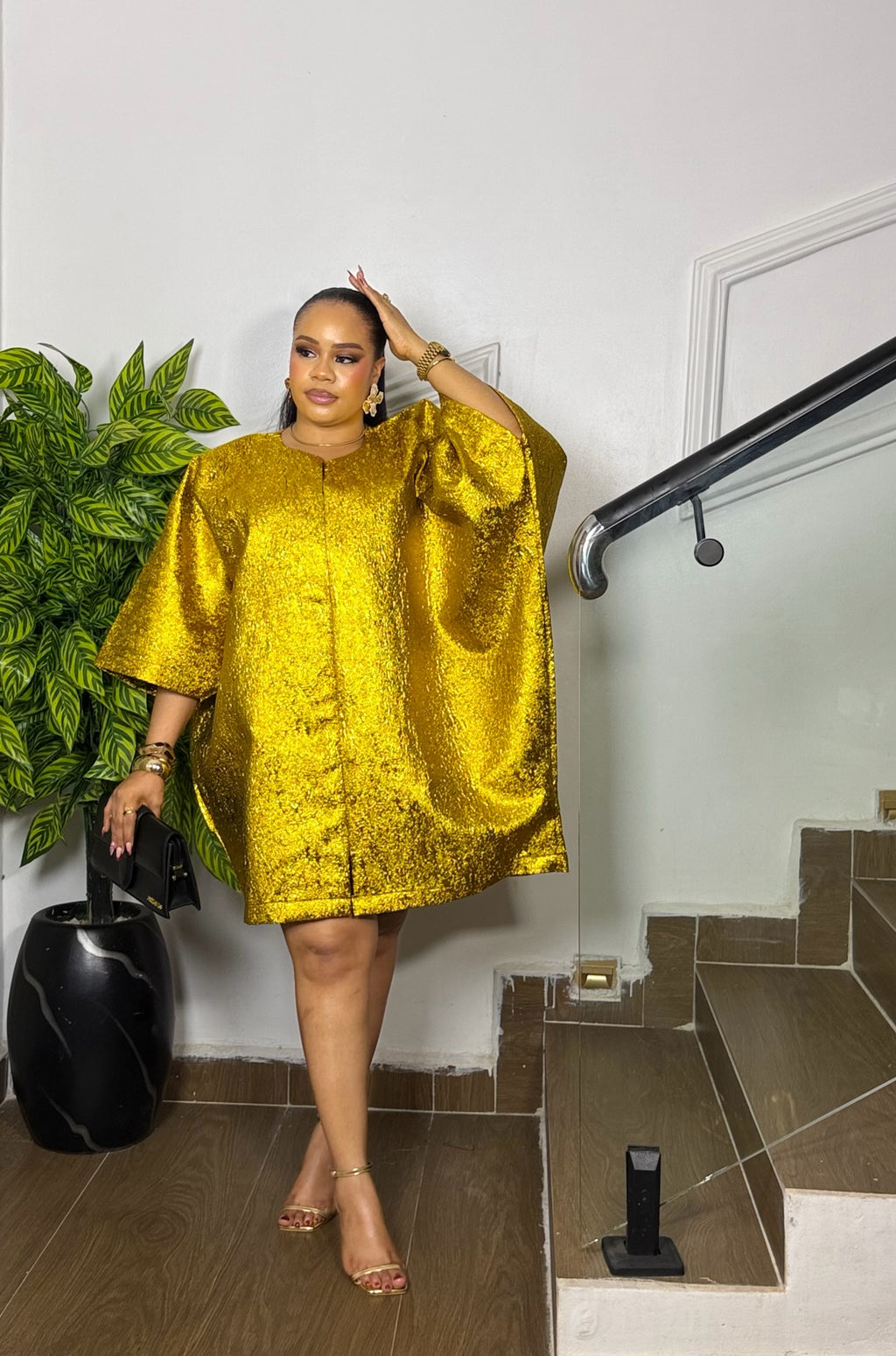 A stylish mini bubu made with a shimmering luxe fabric for an effortlessly classy look. Featuring a relaxed oversized fit with a soft round neckline—perfect for dinners, parties, birthdays, and special occasions. Easy, elegant, and made to stand out.