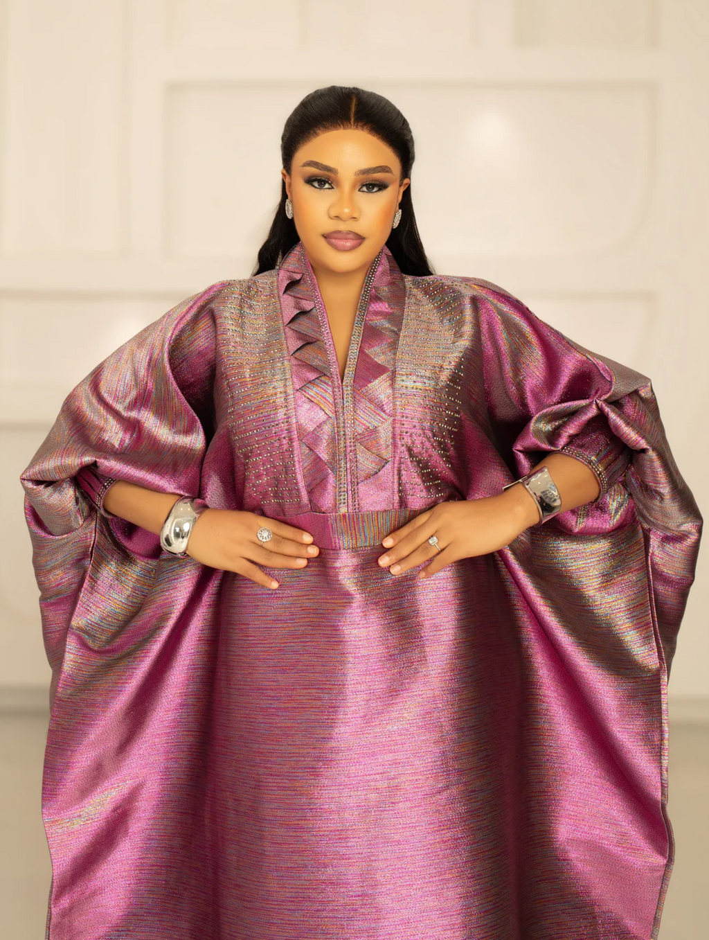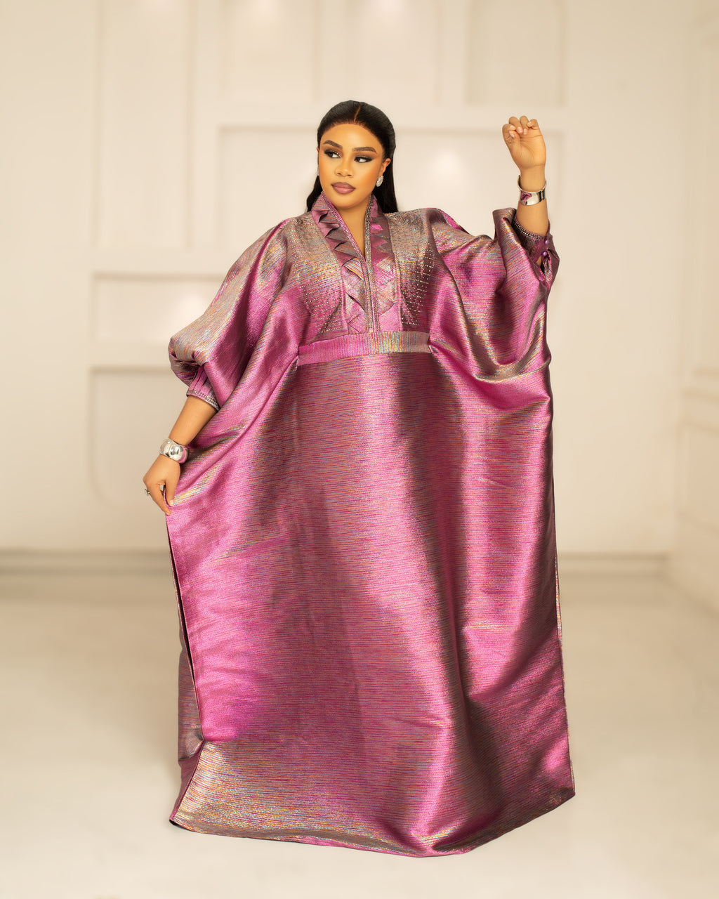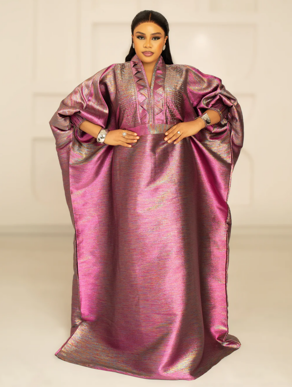 Crafted from original European brocade, this bubu radiates pure sophistication at an affordable rate. The shimmering fabric catches the light with every step, giving you that ultra-luxury feel without the luxury price tag. It features an inner belt to effortlessly cinch the waist to your desired fit, enhancing your silhouette with grace. Fully lined for comfort and elegance, it also comes with a matching headscarf you can style your own way—for a look that’s as regal as it is versatile.